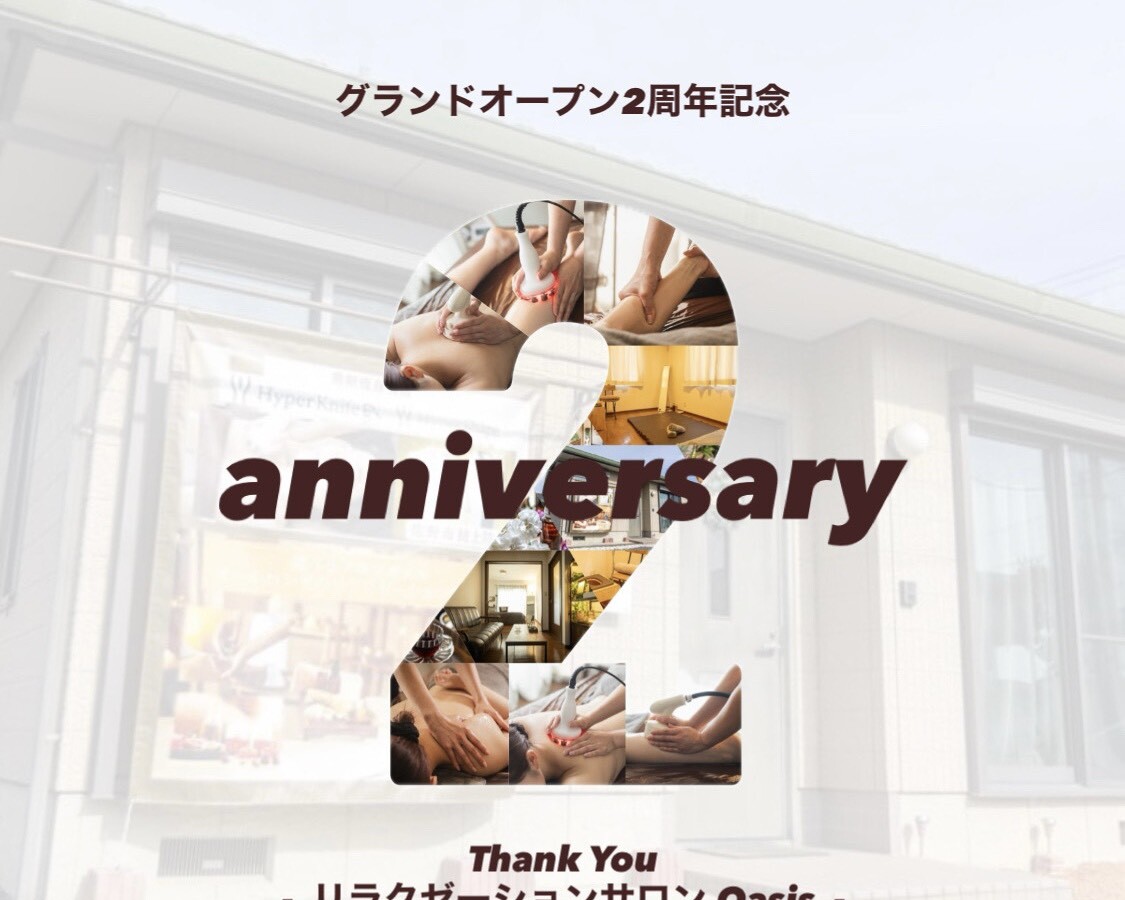 「日頃のご愛顧に感謝をこめて 〜癒しと美しさをさらにアップデート〜」 おかげさまで当サロンは、このたび2周年を迎えることができました。日頃より足を運んでくださる皆さまのご愛顧に、心より感謝申し上げます。「癒しと美しさ」を大切に、お一人おひとりに寄り添うサロンでありたいという想いのもと歩んでまいりました。これ...